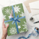 Papier Cadeau Thème de Noël Green White Snowflakes Motif