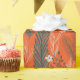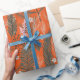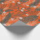 Ce motif de papier d'emballage à thème de Noël présente de la verdure de Noël avec de jolies fleurs blanches avec un arrière - plan personnalisé rouge-orange.