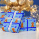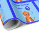 Papier Cadeau tigre de 5e anniversaire nom personnalisé bleu