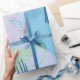 Cool moderne formes géométriques abstraites bleues et vertes avec une touche de rose, motif sans couture. Arrière - plan bleu pastel.