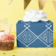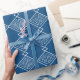 Ce papier d'emballage moderne d'inspiration boueuse avec un motif tribal élégant bleu et blanc est parfait pour des événements ethniques. Certains losanges sont remplis d'illustrations solaires.