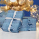 Papier Cadeau Tissu en denim déchiré, teintes bleues.