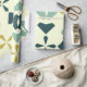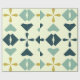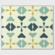 Vintage geometric pattern in shades of blue, lime green, and petrol yellow.