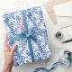 Embrassez la tradition intemporelle avec le papier d'enveloppement bleu classique, avec d'élégantes illustrations florales en cobalt riche sur blanc croustillant.