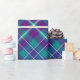 Papier Cadeau Tourbé vert de mer, violet et bleu Tartan