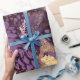 Des violets chauds aux accents dorés dans une riche couche de gouttes de peinture fluide et des éclaboussures artistiques. (Cette version de la conception est dimensionnée à 18 pouces par répétition unique, pour mieux s'adapter aux dimensions du papier d'emballage.)
