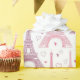 Tours Eiffel illustrées de rose et de violet avec des coeurs de style dessinés à la main dans un motif répétitif.