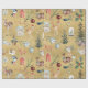 Un papier d'emballage de Noël avec des éléments aquarellés de choses liées à Noël et aux rennes.