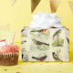 Toutes sortes d'oiseaux dans toutes sortes de couleurs sur papier d'emballage - idéal pour les anniversaires. Les oiseaux sont bleus, noirs, jaunes, rouges et blancs sur des arrière - plans colorés fusionnés en une image de surface composée de patchwork.