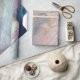 Bleu pastel, turquoise, rose et or avec brosse blanche a trait abstrait motif.