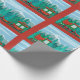 Papier d'enveloppement de train de Noël en rouge, vert et bleu ciel.
