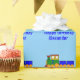 Un train descend les voies au-dessus de votre message personnalisé (montré : Joyeux anniversaire Alexandre). Changez le nombre du train en âge de l'enfant (montré : 3). L'arrière - plan est bleu de ciel.
