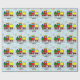 Mignon moteur de train multicolore jaune, rouge et vert. Vous trouverez ci-dessous un modèle pour ajouter votre propre message et nom. Papier d'emballage personnalisé adorable que tout enfant adorera.