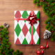 Papier Cadeau Très grand Jacquard rouge foncé, vert et blanc