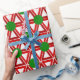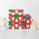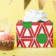 Ce papier d'emballage a une conception géométrique de triangles rouges et rouges profonds répétitifs avec des cercles verts sur un champ de blanc cassé. Voulez-vous le même design dans des couleurs différentes? Message-moi.