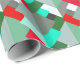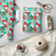 Papier à envelopper dans un design moderne de triangles stratifiés dans des tons turquoise, gris/gris, rouge tomate et vert jade, accentué de blanc