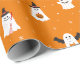 Papier d'emballage à motif Halloween adorable avec ruse ou traitement des fantômes habillés en sorcières, chauves-souris, chats et citrouilles. Le design mignon en orange, rose, noir et rouge est parfait pour ajouter une touche de magie éffrayante à votre emballage cadeau Halloween. Toutes les oeuvres d'art sont originales et conçues par Creative Wolf Design.