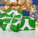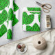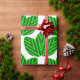 Ce papier d'emballage a un design scandinave de trios feuilles se répétant à travers le design dans trois nuances de vert.