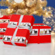 Trois alpacas dans les chapeaux de Noël décorent ce papier d'emballage de Noël qui dit "voeux de Noël"