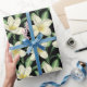 Papier Cadeau Tropical continu motif fleurs blanches feuille ver