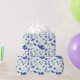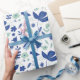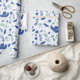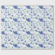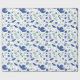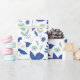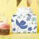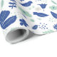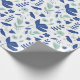 Papier d'emballage floral moderne dans les tons bleu oxford et vert menthe avec des accents beiges représentant un jardin de printemps complet avec tulipes et oiseaux.
