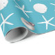 bleu turquoise, Noël tropical / rouleau papier d'emballage de vacances. Des étoiles de mer blanches, des dollars de sable et des ornements arborés ornent un joli papier bleu-vert. Nous avons des étiquettes d'autocollants qui correspondent :