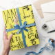Papier d'emballage de typographie noir et jaune qui peut être personnalisé avec un nom ou un mot.