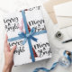 La typographie stylisée avec le dicton "Merry and Bright" sera l'étoile de votre papier d'emballage de vacances. Le buffalo plaid motif tree est à la mode, rustique et a l'air merveilleux! Voir aussi nos points de coordination.