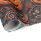 Ce papier d'emballage dynamique à thème Halloween présente un motif transparent et très détaillé de citrouilles orange sculptés entrelacés de fleurs botaniques orange tourbillonnantes. Le riche contraste de tons citrouilles chauds et d'arrière - plans turquoises cool crée un design saisissant et fantaisiste parfait pour l'emballage cadeau pendant la saison d'automne, les fêtes d'Halloween ou les célébrations d'automne festives.