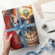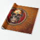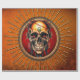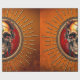 Un crâne dont la présence inspire à la fois émerveillement et fascination. Son crâne est marqué par le temps, portant en son centre un trésor radieux, une pierre précieuse qui pulsère de couleurs chatoyantes et qui renferme le secret de la vie et de la mort. Le crâne s'enfonce comme deux charbons brillants, rouge vif et perçant, comme s'ils pouvaient voir les secrets les plus profonds de l'âme. Une couronne de feuilles figuiers, dont les veines vertes contrastent avec l'os pâle. Cette étreinte vivante symbolise le cycle éternel de la vie et de la mort, tandis qu'une chaîne artisanale l'encercle - un signe de la connexion inséparable entre les mondes.