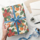 Papier Cadeau Un Modèle Floral Avec Poinsettias, Oranges, Holly