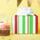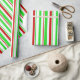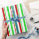 Ce papier d'emballage est décoré de rayures sur le thème de Noël de couleur rouge, blanc et vert. Le papier enveloppant comme celui-ci peut être utilisé pour envelopper des cadeaux ou des cadeaux donnés pour célébrer un anniversaire, un mariage, un anniversaire ou tout autre événement.