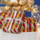 Admettez qu'on étiquette avec une éclaboussure du fonctionnement rouge et jaune. Ce papier d'emballage est entièrement personnalisable.