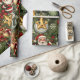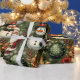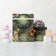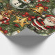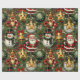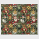 Ce papier d'emballage de Noël présente un motif répétitif de personnages festifs et d'ornements sur un arrière - plan vert foncé. Le design comprend : Jolly Santa Claus : Un Père Noël debout avec un sourire amical, agitant. Rindeer : Un renne avec un nez rouge et un sucre de canne. Snowman souriant : un bonhomme de neige portant un chapeau supérieur et une écharpe verte. Ornements heureux : Une variété de grands ornements souriants, dont une étoile dorée et une baule verte avec un design de flocon de neige. L'arrière - plan est rempli d'éléments de Noël classiques comme des feuilles saints, des baies rouges et des flocons blancs, créant un look de vacances détaillé et traditionnel.