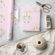 Emballage cadeau de licorne avec d'adorables visages de licorne sur un arrière - plan rose.