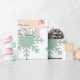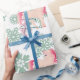 Rose vert et girly et mignon. Un papier d'emballage de Noël fantaisiste avec une licorne rose dans un tourbillon d'étoiles bleues formant un sapin de Noël. L'Arrière - plan est un tourbillon de flocons de neige de différentes formes. Le papier correspond à une gamme de la Unicorn rose de Noël personnalisé stationnaire.