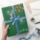 Elégant et mignon papier d'emballage de Noël personnalisé avec Père Noël dans son traîneau tiré par une licorne, divers flocons de neige, et des arbres de Noël décorés de billes d'argent. Parfait pour les petits enfants, surtout les petites filles qui aiment les licornes. Avec les salutations personnalisables "Joyeux Noël !" + "Amour, Père Noël" en écriture / calligraphie stylisée. Sur un arrière - plan vert de Noël.