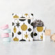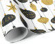 Papier d'emballage de Noël joliment conçu avec des ornements de Noël noir et or.