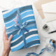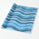 Couleurs de lignes ondulées bleu et blanc motif style rétro amusant papier d'emballage personnalisé.
