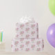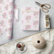 This Valentine's Day gift wrapping paper features balloon bouquets of heart shaped balloons in soft watercolor shades of pink and green with flowers on a pale pink background.