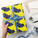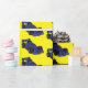 papier d'emballage cool imprimé partout avec des voitures de sport de course bleues mignonnes sur un arrière - plan jaune vif