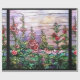 La reproduction florale vintage magnifique de fenêtre en verre souillé de Nouveau Tiffany d'art a dépeint la beauté d'un champ des roses trémière dans le ton pourpre romantique contre le ciel de coucher du soleil est sur ce document d'emballage cadeau.
