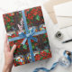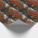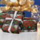 Papier Cadeau Verre tendu Poinsettia Rouge Fleurs et baies