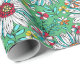 Papier Cadeau Vert blanc Jaune Orange Rouge Fleurs de marguerite