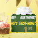 Ce design papier d’emballage comporte un message comme "PREMIER ANNIVERSAIRE DU NOM !", avec le "1er" ayant une apparence de couleur fausse/imitation or, et avec le nom et "ANNIVERSAIRE" dans une police amusante et audacieuse. Le nom peut être customisé, et l'arrière - plan est vert de couleur. Un papier comme celui-ci pourrait peut-être être utilisé pour envelopper les cadeaux d'anniversaire donnés à quelqu'un pour célébrer son premier anniversaire. [~Z0000208]