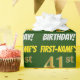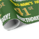 Ce papier d’emballage comporte un message comme "FIRST-NAME’S 41st BANTHDAY!", avec le "41st" ayant une apparence de couleur fausse/imitation or, et avec le nom et "BANTHDAY" dans une police amusante et audacieuse. Le nom peut être personnalisé, et l'arrière - plan est vert couleur. Un papier comme celui-ci pourrait peut-être être utilisé pour envelopper les cadeaux d'anniversaire donnés à quelqu'un pour célébrer leur quarante et unième anniversaire. [~Z0000208]