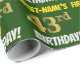 Ce papier d’emballage comporte un message comme "FIRST-NAME’S 43rd BANTHDAY!", avec le "43rd" ayant une apparence de couleur fausse/imitation or, et avec le nom et "BANTHDAY" dans une police amusante et audacieuse. Le nom est personnalisable, et l'arrière - plan est en couleur verte. Un papier comme celui-ci pourrait peut-être être utilisé pour envelopper les cadeaux d'anniversaire donnés à quelqu'un pour célébrer leur quarante-troisième anniversaire. [~Z0000208]