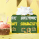 Ce design papier d’emballage comporte un message comme "58e anniversaire de SAMANTHA!", avec le "58e" ayant une apparence de couleur fausse/imitation or, et avec le nom et "anniversaire" dans une police amusante et audacieuse. Le nom peut être customisé, et l'arrière - plan est vert de couleur. Un papier comme celui-ci pourrait peut-être être utilisé pour envelopper les cadeaux d'anniversaire donnés à quelqu'un pour célébrer son cinquante-huitième anniversaire. [~Z0000208]