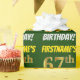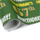 Ce design papier d’emballage comporte un message comme "FIRSTNAME’S 67th BANTHDAY!", avec le "67th" ayant une apparence de couleur fausse/imitation or, et avec le nom et "BANTHDAY" dans une police amusante et audacieuse. Le nom est personnalisable, et l'arrière - plan est en couleur verte. Un papier comme celui-ci pourrait peut-être être utilisé pour envelopper les cadeaux d'anniversaire donnés à quelqu'un pour célébrer son soixante-septième anniversaire. [~Z0000208]