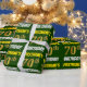Papier Cadeau Vert, Faux/Imitation Or, "70e ANNIVERSAIRE"